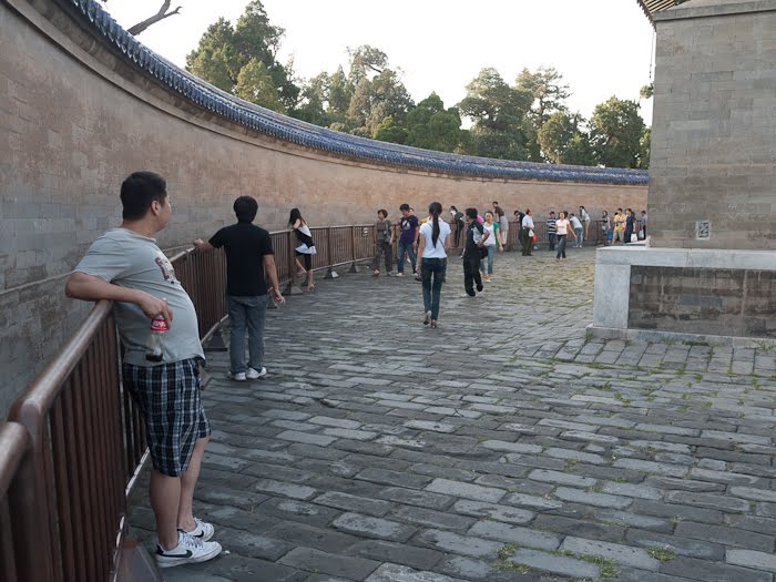By now I’d had about enough culture for one day and given that I had a long walk back I decided to head in the direction of the north gate as it was a better choice than the way I had come. After getting a bit lost in the maze of cedars I found the north walk and went off in search of the exit. People were flying kites in the dwindling light and old men were running in packs along the outer wall, getting their evening exercise. In theory may path should have arced slowly to the left before joining the main road out. And it did, but it didn’t seem to be doing enough arcing. I stopped and asked an elderly man for the “chukou” or exit and he told me to keep going. I did so and a short while later I found a right turn and managed to escape the grounds.