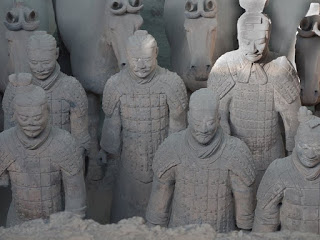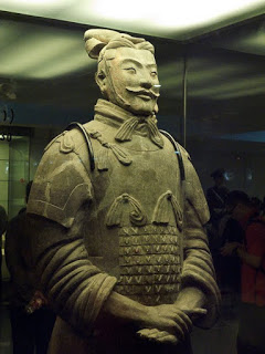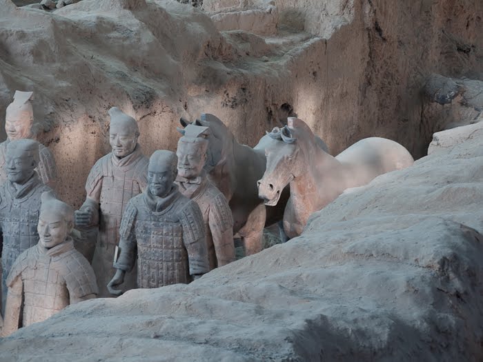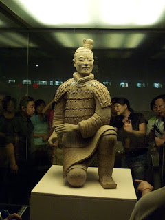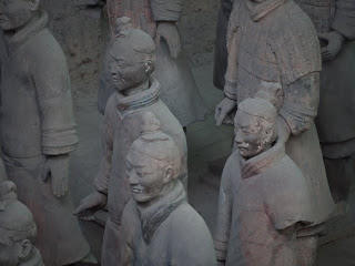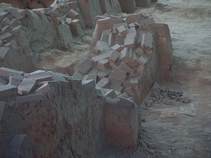 I thought I would make a second posting, sharing some additional photos of the warriors. While the scale of the place is what takes your breath away, it’s the unique individuality of each soldier that is truly incredible. That and the fact that what you see is the result of more than 30 years of restoration, taking a pile of rubble and turning it into a phalanx of men. I’ve included some “before” pictures to show what the archeologists have to work with, the torsos of the men and the tiles that originally paved the gallery. I think the “as found” condition of the soldiers really makes the scope of the place sink in.