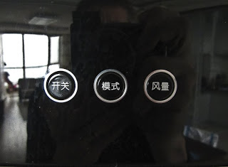 The great thing about Chinese appliances is that their buttons are in Chinese. I’ve been through this with multiple washing machines and the way I’ve arrived at clean clothes is to just punch buttons until the water flows and then walk away. A heater/air conditioner is a bit different because there is no water to come on. Air might flow but who knows if it’s going to be hot, cold or indifferent? And unlike my washer whose display was limited to times, this unit was covered with little illuminated icons that I could sort of make out under their smoky plastic covers.