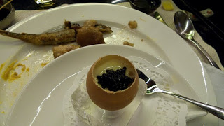 16. Soft Boiled Egg Surprise – an egg shell with the tip cut off re-filled with egg custard and a little chunk of goose pate. Cooked on the grill in a special wire stand and served in a crystal egg cup. Topped with a spoonful of caviar. It was a pretty darn tasty concoction and I liked it.