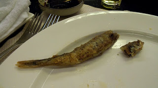 15. Horny Fish – a skinny little dagger-like fish breaded and fried. They call it “horny” because it’s always full of fish eggs when you bite into it. It’s eaten bones, skin and all, but not by me. I tore off the head and looked at it until the waiter came around and took it away.