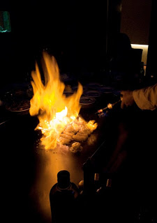 Chef came in and started to do the whole Benihana thing with the oils and the spatulas and the knives and the spices, cooking without break for about 3 hours. We ended up browsing our way through 26 courses and an undefined quantity of those extra tall Chinese beers. Some of the dishes were for the record books, some merely normal.