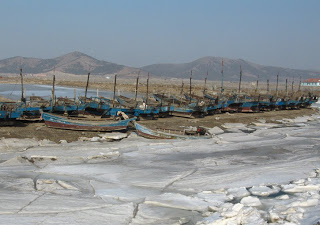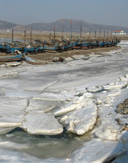 The goal on this day was to ride across the Liaodong Peninsula to the Bo Hai Sea, north of us and the major sea lane to Tianjin and Beijing beyond. When I was riding home from Shanghai last week I happened upon an article in the English language newspaper, China Daily, concerning ice on the Bo Hai supposedly the worst in 33 years. Like most stories in Chinese newspapers this one focused on the human impact – the people who lived on the ice-bound islands who had to resort to bringing fuel and food across the floes on donkey carts. And the potential impact to the aquaculture industry, ponds frozen solid for the first time in anyone but the oldest citizen’s memory. I saw the photos and knew I had to go if only to verify that it was as dramatic as the reporter claimed.