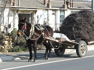 It has been very cold here recently and the extremities of weather make cycling a rather hard undertaking. While my riding partner Dermot and I have not had to endure days like the one we spent in the monsoon last summer, we have had to deal with the cold and the wind, the two things that make Dalian what it is in the wintertime. But with those challenging meteorological moments comes many rewards. Seeing village life in January’s China is fascinating – women doing laundry in square holes chopped in the ice or in whatever open water there is, donkeys sporting little red tassels on their halters tied up in warm little nooks out of the wind and dozing in the sunshine, cows lying by the side of the road doing the same, people up on their roof milling the corn they put up there last fall, old men trying to find one last little bit of firewood by trimming the unimportant branches in their cherry orchards. Life here in the winter is about keeping warm, staying fed and making sure that the animals make it through to spring when their work begins.