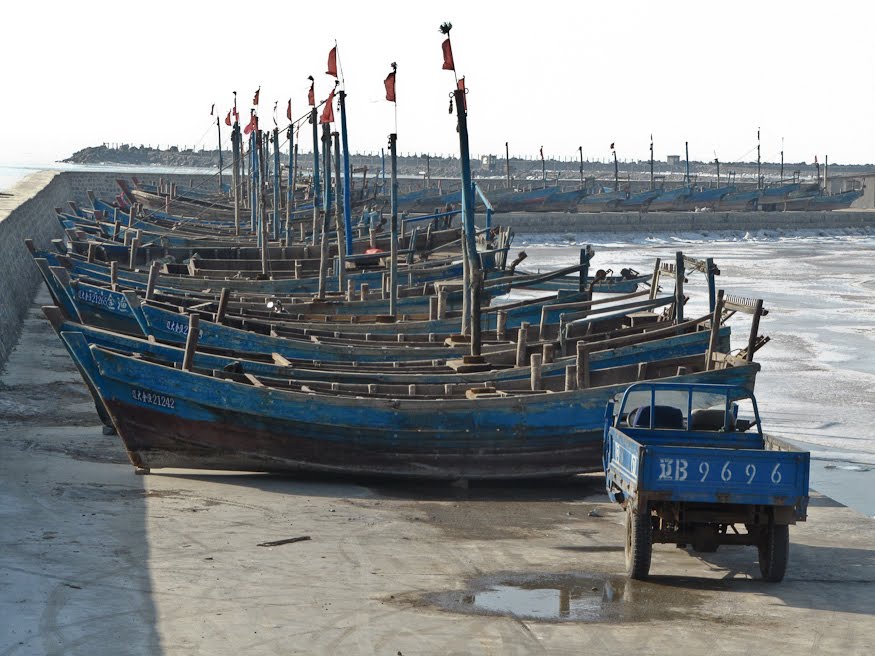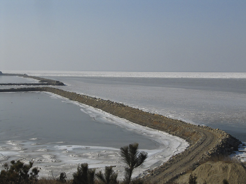 The goal on this day was to ride across the Liaodong Peninsula to the Bo Hai Sea, north of us and the major sea lane to Tianjin and Beijing beyond. When I was riding home from Shanghai last week I happened upon an article in the English language newspaper, China Daily, concerning ice on the Bo Hai supposedly the worst in 33 years. Like most stories in Chinese newspapers this one focused on the human impact – the people who lived on the ice-bound islands who had to resort to bringing fuel and food across the floes on donkey carts. And the potential impact to the aquaculture industry, ponds frozen solid for the first time in anyone but the oldest citizen’s memory. I saw the photos and knew I had to go if only to verify that it was as dramatic as the reporter claimed.