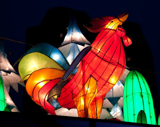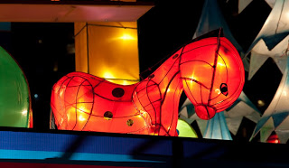 It was getting dark so I headed off to the one part of the park I’d not yet visited, stopping to enjoy a float covered with whimsical representations of the zodiac animals. One big rooster and a bright pink horse caught my eye and sent my thoughts far around the planet to people safely tucked in their beds back in the world.