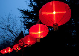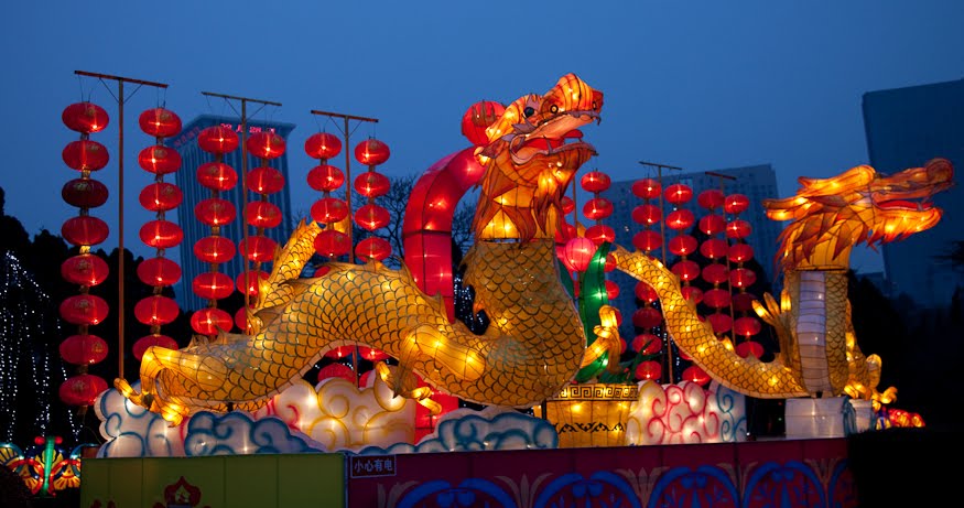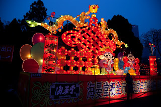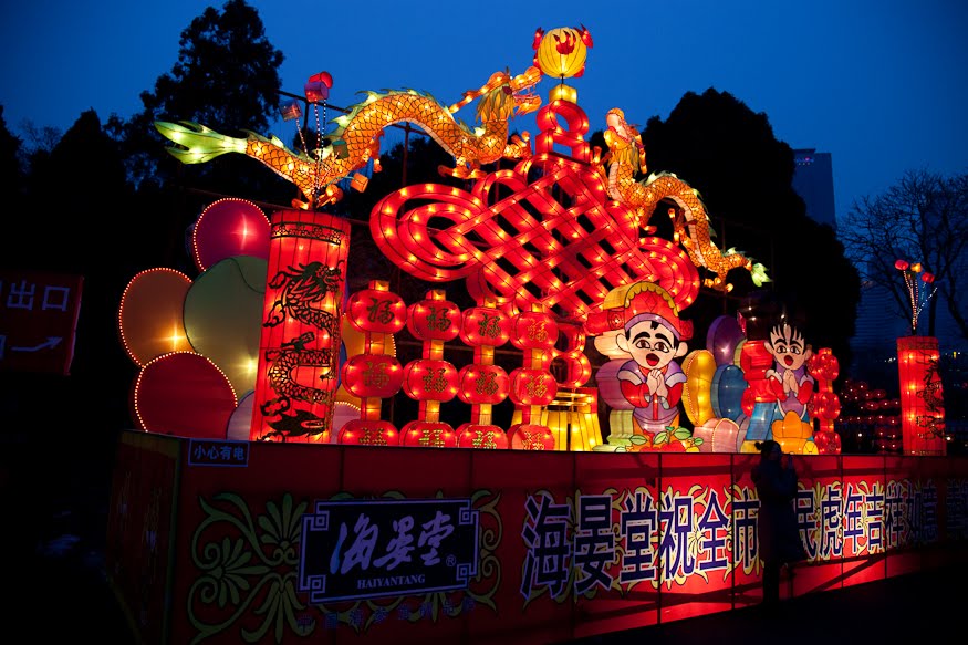 The holiday extends 15 days, until the night of the 1st Full Moon and that night is called Yuán xiāo jié, 元宵节, which more or less translates to “first evening festival.” More romantically in English, it’s known as the Lantern Festival. Like everything else around here, its origin is cloaked in mystery. My preferred story involves (once again) the Jade Emperor. It seems that he had a pet goose that took a flight down to earth and was mistakenly killed by some ignorant villagers. The Jade Emperor was very upset at this brazen affront so he lined up 7 dragons and was planning to send them to burn the homes and the fields of the offending people. A kindly fairy overheard his plan and flew down to let them know what was in store, telling them to light red lanterns. They did so and when the Jade Emperor looked down on earth he saw glowing red and thought that the dragons had done their job – he mistook the lanterns for flames and so put the dragons back in their crates for the night. The villagers were saved and ever since that time, people light lanterns to keep the Jade Emperor confused.