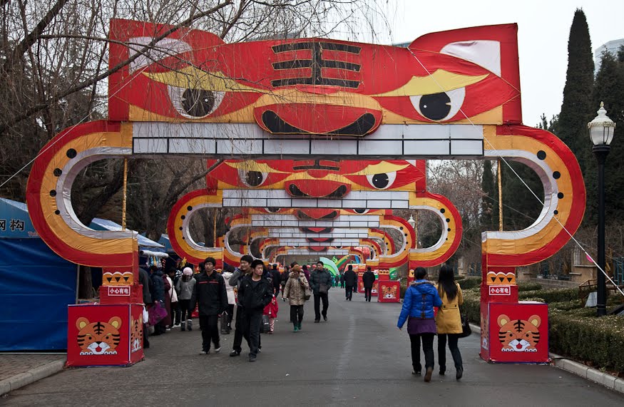 The Spring Festival in China starts on the 1st day of the 1st Lunar month of the year. The notion of “spring” is a bit misleading as it normally occurs in January or February and so in almost no way represents the western notion of what springtime is. This time of year in northern China is cold, dark, wet and totally uninspiring. The only heat we feel is from the never ending shower of burning paper falling from the sky, the remnant of an apparently inexhaustible supply of fireworks.