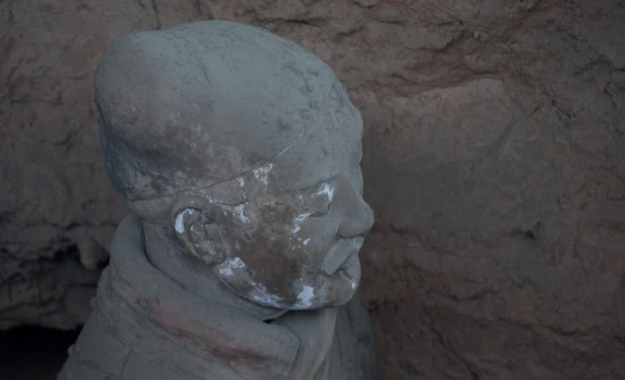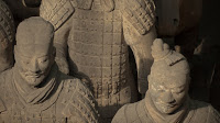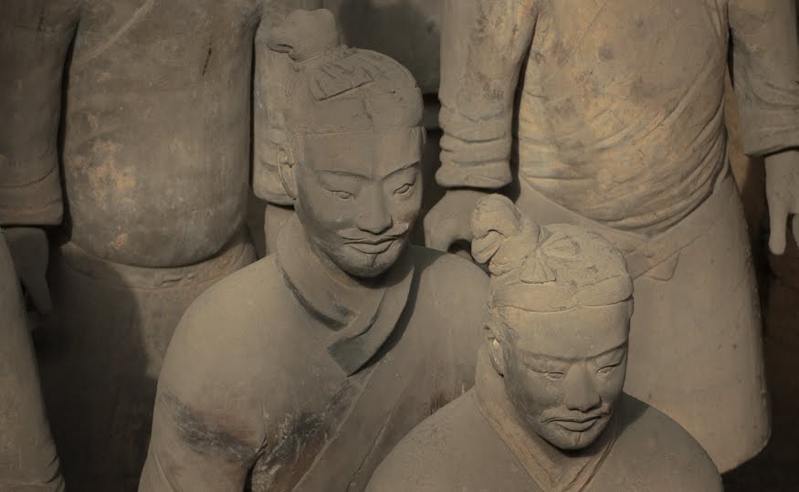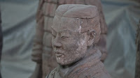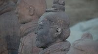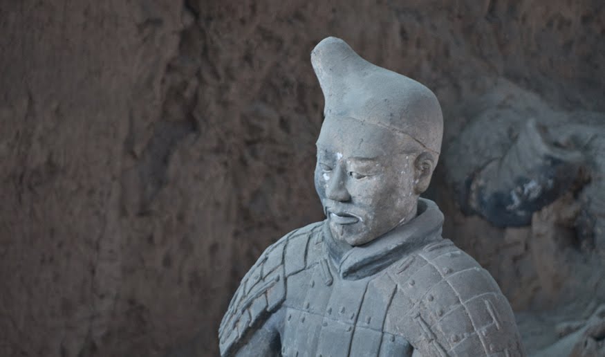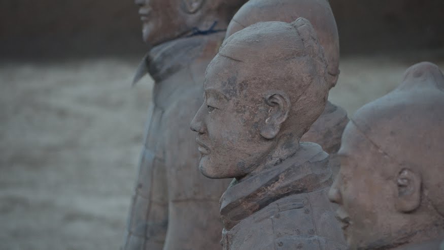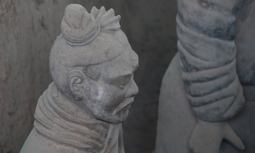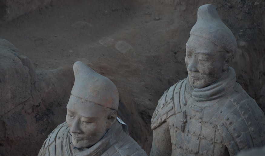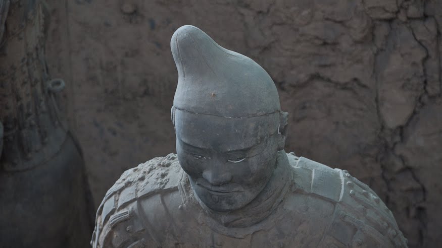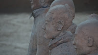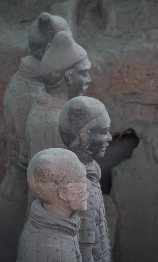 Rumor has it that if you can find two identical Warriors, the government will give you the statue of your choice and given that there are more than 6000 of them on site it’s probably a safe bet. From the vantage point of the walkways that surround the pits it’s clear that few of them even look enough alike to be related. You can see the ethnicity of the men – south people vs. north people – as well as all the tiny features that made each one of them unique. The shape of their eyes, the way their hair was braided. Infantry can be told from officer by the shape of their hat. Facial hair, eyebrows, scars, all little things that bring out their individual humanity. Scanning the thousands of faces is incredibly poignant – these were soldiers who fought and died in the name of their emperor and his political aims. It’s not known whether each statue represents an actual fighter or whether the artists copied each other into the mix as well, perhaps to create even more diversity. It hardly matters, what you see are emotions and expressions passed down over these 2000 years knitting an unbroken chain between us and them. Because over the course of two millennia, very little has actually changed when it comes to living, fighting and dying. Today, they stand there facing east, the direction of the afterworld of the time. The rear guard faces back, protecting the soldiers ever advancing forward. You expect to hear the sound of boots on the ground and horses galloping past but all you get is silence.