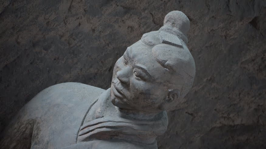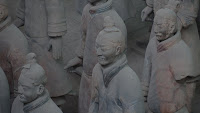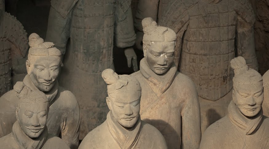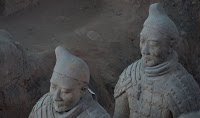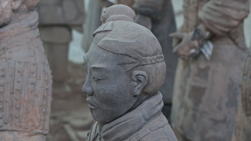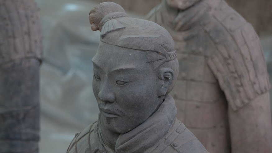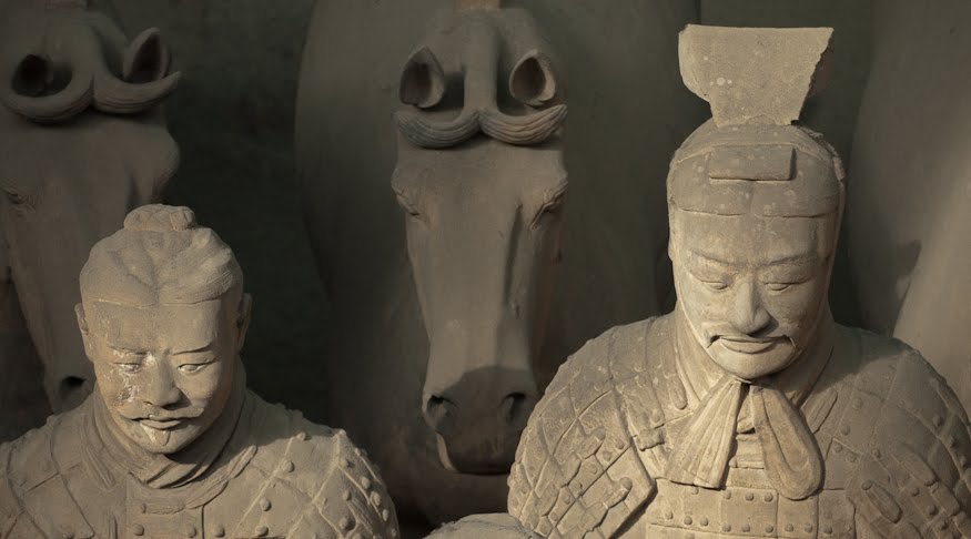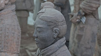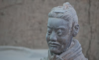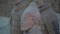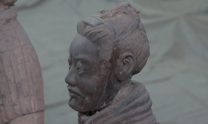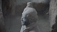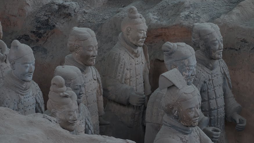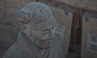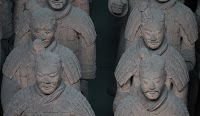 Rumor has it that if you can find two identical Warriors, the government will give you the statue of your choice and given that there are more than 6000 of them on site it’s probably a safe bet. From the vantage point of the walkways that surround the pits it’s clear that few of them even look enough alike to be related. You can see the ethnicity of the men – south people vs. north people – as well as all the tiny features that made each one of them unique. The shape of their eyes, the way their hair was braided. Infantry can be told from officer by the shape of their hat. Facial hair, eyebrows, scars, all little things that bring out their individual humanity. Scanning the thousands of faces is incredibly poignant – these were soldiers who fought and died in the name of their emperor and his political aims. It’s not known whether each statue represents an actual fighter or whether the artists copied each other into the mix as well, perhaps to create even more diversity. It hardly matters, what you see are emotions and expressions passed down over these 2000 years knitting an unbroken chain between us and them. Because over the course of two millennia, very little has actually changed when it comes to living, fighting and dying. Today, they stand there facing east, the direction of the afterworld of the time. The rear guard faces back, protecting the soldiers ever advancing forward. You expect to hear the sound of boots on the ground and horses galloping past but all you get is silence.