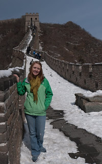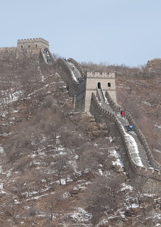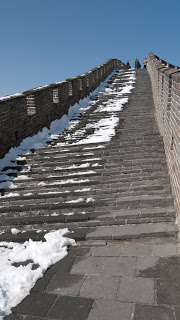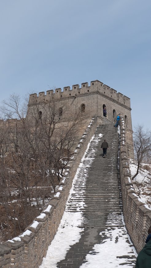 It was tough going in places due to the ice and the snow but it was sure nice not to be stuck in the throngs that are here in high season. We walked for a long way, stopping to chat with elderly people selling Cokes and Oreos and bottled water. One old man told me how much he loved America and how nice it was that I lived in China, even if it was in the northeast. Our conversation eventually led to his offer to sell me a commemorative copper plate engraved with the words “I climbed the Great Wall.” Declining, we continued on with our exploration, eventually reaching a spot where the condition of the walkway was so bad that we decided to find our way down.