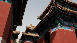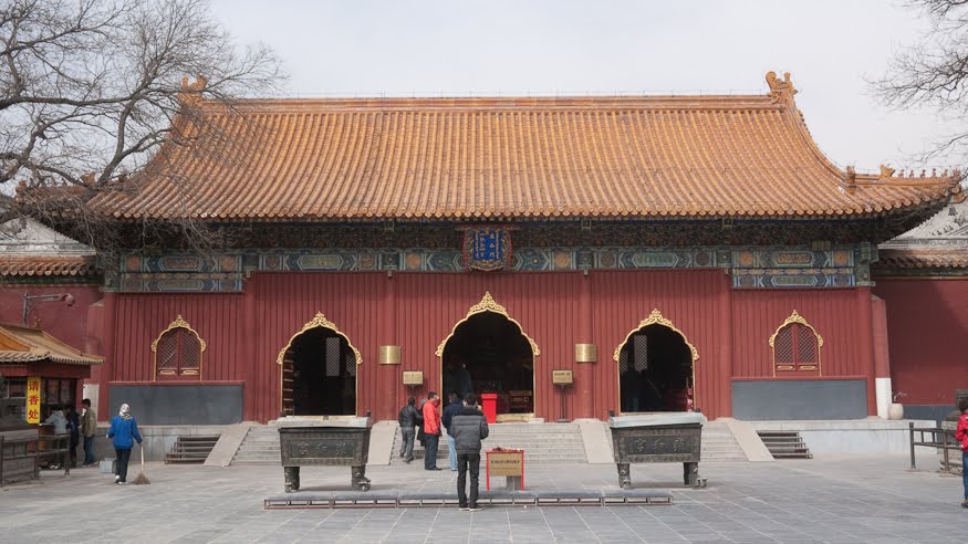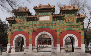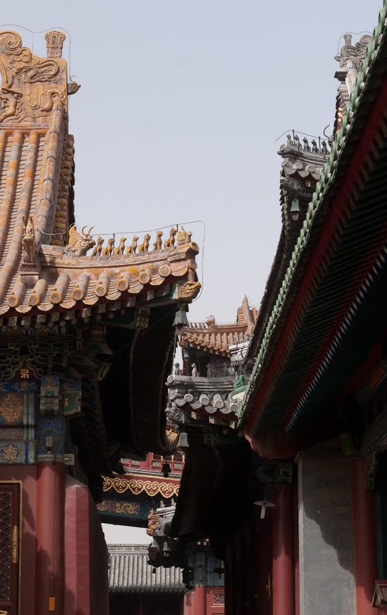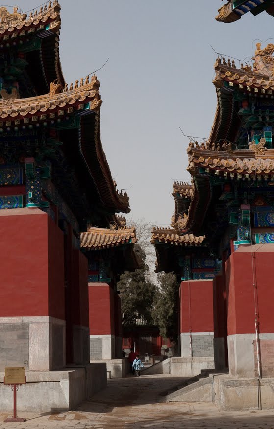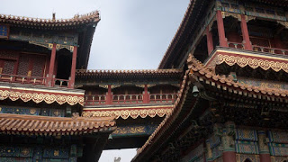 A few hours later the sun actually appeared and all that was left of the storm was a thin layer of red dust on everything. We grabbed the subway again and headed off in the direction of the Yonghegong, the sole Tibetan lamasery in Beijing. Like so many mistruths, the place was not at the subway station that bears its name, rather a good clip down a main boulevard that was lined with shops selling incense for the worshipers. We walked and walked and finally found the entrance.