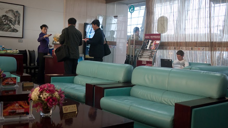 We made it back to Beijing pretty much no worse for the wear, even surviving a stint in the Xi’an airport “Business Lounge” which consisted of a storefront on the main concourse rendered private via some drapes and stocked with large 1960’s Danish-American turquoise couches. The bottled water and crispy potato snacks were free, so there was no complaining on our behalf but the décor had to make one wonder about its origin. Did the Copenhagen store lose a container?