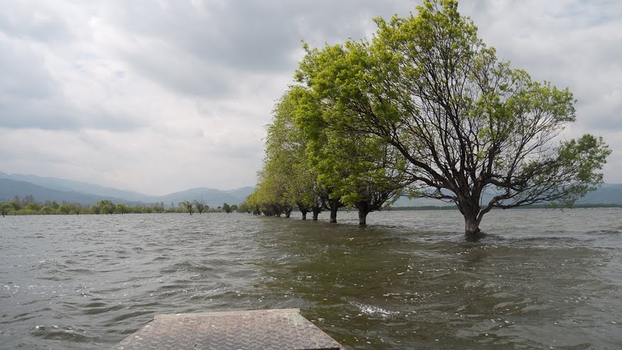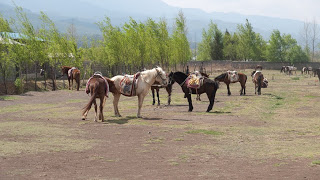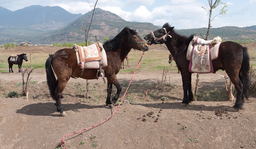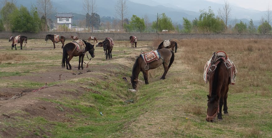 There are four main sights worth seeing within driving distance of Lijiang. Jade Snow Dragon Mountain was a bust as we’d just discovered. The first bend of the Yangtze River is supposed to be something to see, the mighty river flowing down from the plains of Sichuan runs smack into a giant block of upthrust lava and being unable to go through it, makes a timid detour before continuing on its way to Shanghai. Near to this is the famous Tiger Leaping Gorge. But “Kevin” the concierge had told us that they were too far off in the opposite direction to be a reasonable choice, so that left us with La Shihai, a big lake and locally famous wildlife refuge. So that’s where we headed.