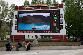 Tse Tan and I had a date at the office of his tour company as I still owed them a bit of money so we drove over to the Chinese side of town (west) and parked out back. The building was on the new side but decrepit like so many in China. Trash in the hallways, water in the staircases, you wonder why no one cares about such appearances in this part of the world. We stopped in the office where I had a chat in Chinese with the workers and handed over the remainder of the fee. Leaving there Tse Tan asked if I wanted lunch and took me to, yes, this is the name, The Tibetan Steak House. We walked in and there were my friends from the Potala and after a reasonably short bout of “Are you sure?” and “No, we insist”, I sat down and joined them. The drivers went off and sat somewhere else. I had a Yak and Potato stew which was pretty good. Westerners at other tables, all men, sat drinking 1 liter beers and chatting. Male western tourists seem to be unable to enjoy themselves without getting drunk at midday, an almost sure inevitability at this altitude. My friends and I talked about the place and their plans. Lunch over, I said “goodbye” again, this time for sure, and left for our next destination.