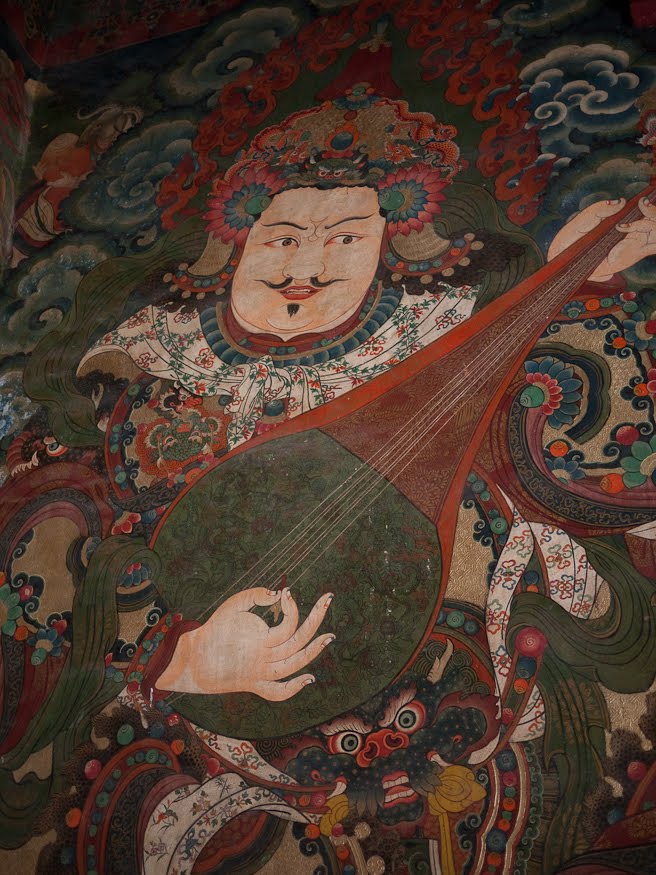 Finally reaching the top we entered another anteroom, this one with tall murals of fierce guardian Buddha on the surrounding walls painted there to keep the evil away. All temples have these and I’ve always wondered about them; it was nice to finally have an explanation. Two doors with enormous bronze handles holding long braids of colorful fabric gave access to the rooms beyond. Doorways in the ceremonial structures of China are not like ours – they have an elevated threshold that is said to keep the crawling evil spirits out. I suspect that the real answer is more prosaic and probably has to do with snakes and vermin, but the truth is lost somewhere in the mists of time. And besides, the current explanation is far more interesting and in tune with the spirit of the place. Tradition holds that it is considered bad manners to step directly on the threshold, and so I carefully stepped up and over and into the Potala itself.