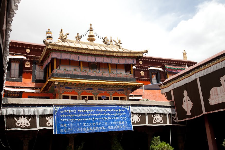 Like the original Potala, Jokhang Temple was originally built in the 7th century by King Songtsan Gampo or his Chinese wife who was a Buddhist. Legend has it that for years the people were unable to build a temple in the area as they would always fall down. Gampo’s wife Princess Wenchang reasoned that the geography of the region was like a hag, and that a lake on this site was the hag’s heart. She commanded that a thousand sheep carry rocks and dirt down from the surrounding mountains to fill in the lake. Once filled, the hag was dead and the Jokhang could be built. It still stands today.