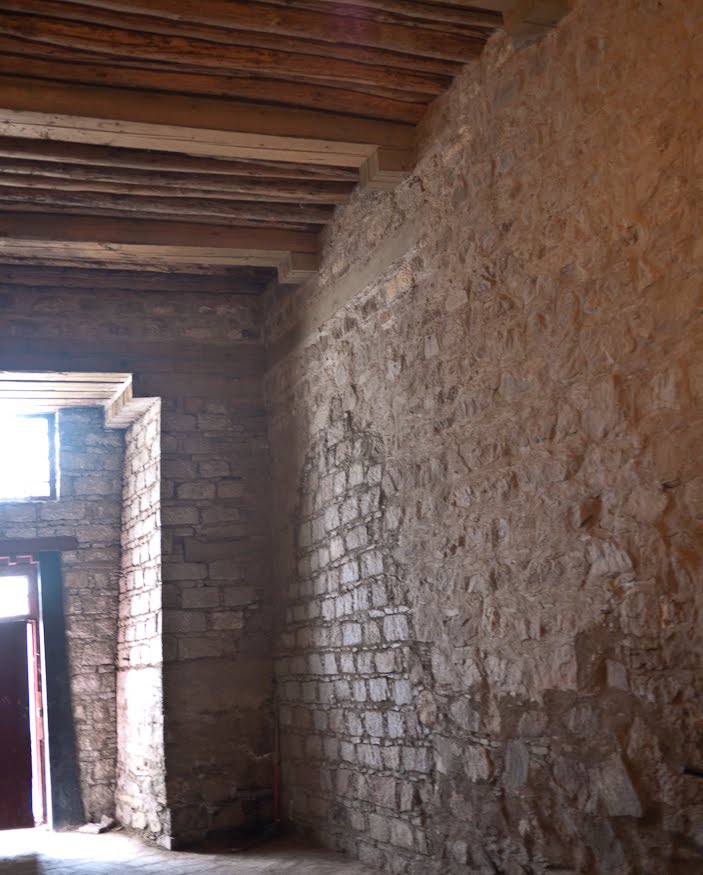 We were led into an anteroom where we went through a basic airport security check. The construction of the place was apparent here in the basement – walls of plastered adobe bricks holding up beams which in turn held smaller poles (latillas in our part of the world) which acted as the base for the floor up above. In short precisely the same guts of my house back home. It seems that this style of construction follows me wherever I go, it being the product of people using what’s on hand. In places like this, Lijiang where I’d just left and the American southwest, mud, straw and sunshine are in abundance. Trees less so and therefore their use is more sparing. Just another case of parallel development in the far flung corners of the world. When this place was being constructed, the Pueblo people of the Rio Grande had been doing the same thing for a millennium and were just in the process of teaching the colonizing Spaniards to do it too.