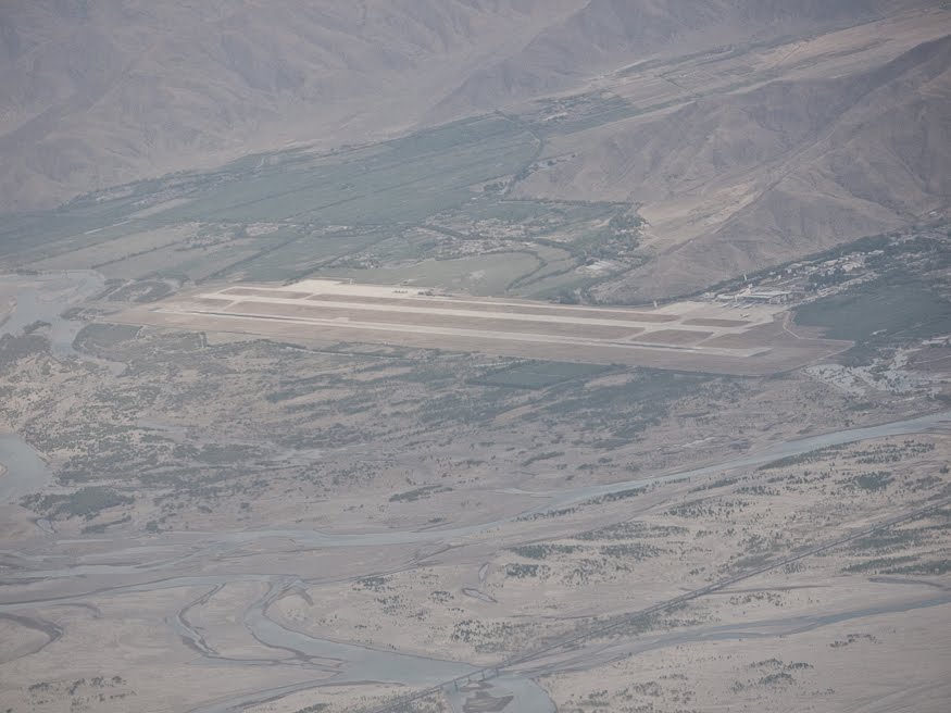 Out in the road it was surprisingly dark for this time of day – the winds we’d encountered on the drive down the mountain had apparently kicked up the dust from the river bed. The big mountains were mostly obscured and the closer peaks could be seen but not very clearly. Most of the time weather like this wouldn’t cause concern but in this part of the world planes often don’t fly when they think it might be cloudy. So I settled back in my seat, kept an eye open for buses approaching on my right and tried to take in the last bit of Tibet I would see on this trip.