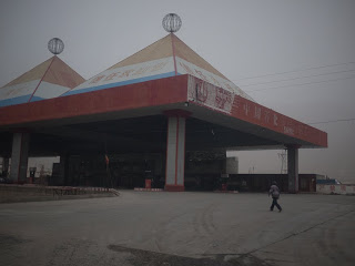When we came out of the tunnel the visibility was even worse – not “we can’t fly a plane with radar” worse but quite a bit cloudier. Tse Tan remarked that there was a lot of dust in the air. We kept on going but I began to have that nagging feeling that I was in for a special day. I took a quick picture of the strangest gas station I’d ever seen – a regular size with the world’s largest cover over the pumps. Why they felt the need to build something so gargantuan and elaborate– 2 giant pyramids surrounded by a parapet – was beyond me. We arrived at the airport and I said goodbye to my team, tipping them both a couple of hundred kuai. I’d debated whether this was appropriate and finally decided that it was – sometimes a little extra buys you some help down the road.