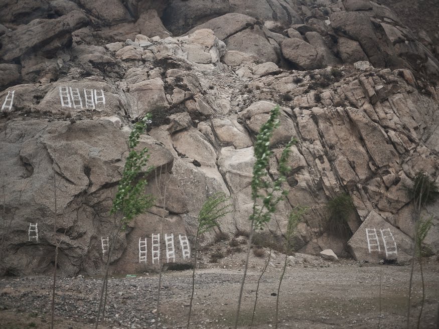 On the way to the high country I had seen a lot of mysterious graffiti on the rocks along the road – little white ladders, perhaps 3 feet high and a foot wide. Today I asked Tse Tan about them and he told me that each year on the 22nd of September, Sakyamuni comes back to earth to visit the faithful. These ladders represent the people’s way of traveling up to see him during the rest of the year. The ladders reminded me a lot of the Kiva version back home, an article imbued with some of the same symbolism, climbing up and down to and from the underworld as a part of the Pueblo Indian rituals. Funny how such a simple device can mean something so similar and deep and powerful to two cultures half a world apart. No doubt there are others with similar beliefs.