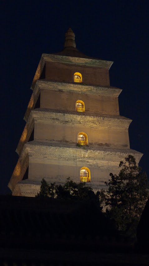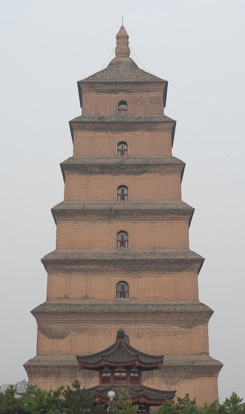Getting back to the car on foot was no less scary than driving in. Each of us had the same thought in mind – what are we going to do if we get separated? And while there were a few close calls, we made it to the end intact albeit a bit rattled. Back in the car with the air conditioner running, we went across town to the Little Wild Goose Pagoda.