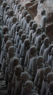 I don’t think I will ever tire of visiting the Terracotta Warriors – they are such an inspiring sight and each time standing before them promises new discoveries. Our second day began with the intrepid Lily and her amazing wealth of knowledge about the region and its history. This time she and I had a long discussion about the cave houses common to this region. I told her that I’d actually seen some still in use during my visit to Datong last week. She said she was surprised as here in Shaanxi they are most relegated to use as storerooms or pig sties. I didn’t quite get the significance of the latter but also didn’t ask. I suppose the pigs with their sensitive skin and acute intelligence would appreciate having a home out of the sun and sporting a year-around temperature of 65 degrees. We also talked about why the home province to Xi’an – Shaanxi – has two A’s while its eastern neighbor – Shanxi – has only one. The answer didn’t go beyond the explanation for the single A version which means “West Mountains”, denoting the highly rugged terrain of that state. Double A Shaanxi uses the same character for west but the first syllable is a bit harder to track down. Its character seems to be eponymous – its definition is essentially the name. Lily in a bit of regional jingoism joked that it had two A’s because it had “Twice the Attraction.”