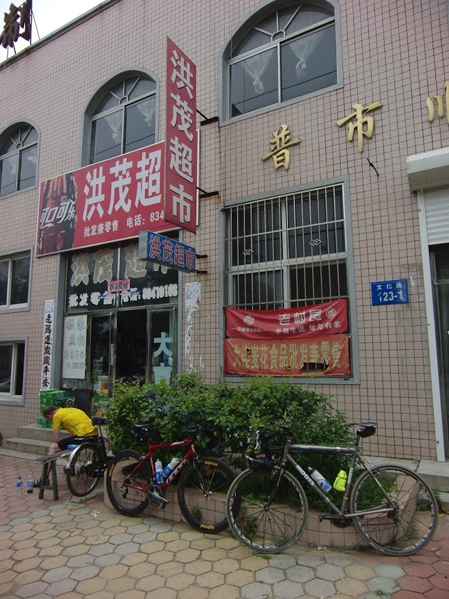 We visited for the better part of an hour, drinking and eating and entertaining all the children of the town who wandered by to see the laowei. As we started to pack up to go she pointed to an old and rusty bicycle parked against cases of empty beer bottles. I asked if it was hers and she said “Yes” and told me that it was 15 years old. I told her it was beautiful and she smiled, no doubt at my compliment but at the tiny connection we three had – cyclists all of us.