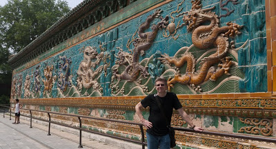 I was sitting there enjoying the breeze when an attractive young woman came and sat down beside me. There was nothing unusual about this – bench space in the shade is highly valued and this being a socialist country, every inch of it is up for grabs. I said hello in Chinese and left it at that. After a few minutes of silence she asked me to take her photograph with her camera and I agreed. She posed a few times, critiqued my style (she wanted to be in the center of the picture, I explained that the right 1/3 was more aesthetically correct) and we returned to silence. She started a second conversation asking why I was there and where I was from and we had a little conversation about homes and families and travel. I mentioned the Nine Dragon Screen and she asked me if I wanted to go. Sensing an opportunity to complete my quest I said “fine”. She asked a passing park cleaning person where it was and off we went.