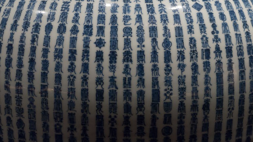 Chinese ceramics are an amazing art form and the collection here was superb. Spanning 3000 years, the oldest look uncannily like the pottery of our Pueblo Tribes and the newest like what we have come to expect – delicate blues, vivid peaches and milky whites. I wandered around a bit stopping to admire an orange Tang horse with telltale white spots on its rump and some beautiful vases covered with what must have been tens of thousands of tiny Chinese characters. The place was empty, it was cool and dark and the goods were a feast for the eyes.