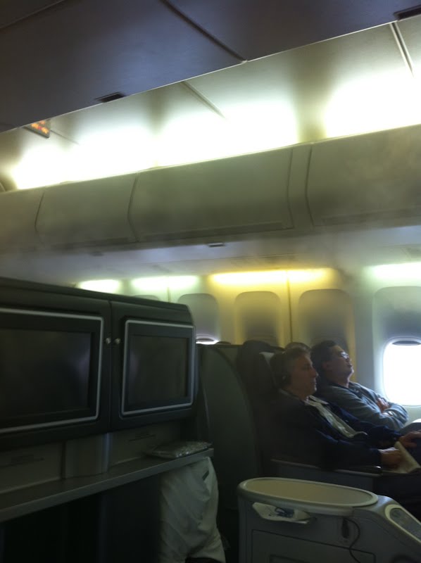 On this day I was lucky enough to get an upgrade but jinxed enough that my seat was one of the back- facing rows. I know from experiencing the Viking Boat at the local amusement park that back-facing is not for me so I looked around and realized that one of my colleagues was sitting a couple of rows up. I asked her row mate if he would swap with me and he agreed – problem solved. I settled into my new seat and as we waited the cabin began to fill up with smoke which is never something you want to see on an airplane particularly one that you have to trust for the next 12 hours. In truth it wasn’t smoke, it was condensation from the air conditioners sucking in all that wet, polluted Beijing tarmac air and cooling it off by dropping the moisture on the people in the window seats. The flight attendants were quite helpful, stealing blankets from the people in the Economy cabin and using them to mop up the business class passengers. Another perk from dedicating yourself to a single airline. Eventually we left and as we crossed 25,000 feet the steam turned to snow and we were treated to sort of a mini-Christmas in August. We flew on, away from the setting sun;, the snow melted and a few hours later we landed.