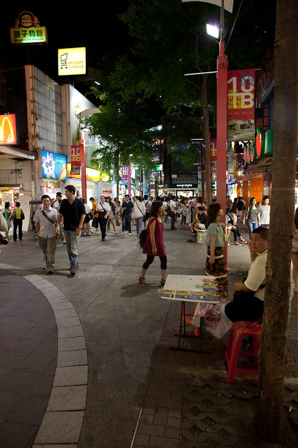 We left the hotel circle and caught RenAi Road towards the heart of the city – a beautiful street, tree lined and covered overhead with dense green from side to side. Two lanes up the middle and two outer lanes allowing parking and access to the blocks of apartments and shops, the basic prosperity of Taipei evident in everything from the people to the cars to the pin neat and lush medians. Not the glitzy, showy wealth of Shanghai but rather an understated self-confidence that comes from people long accustomed to a higher quality of life. Again, Japan kept coming through, but you could tell from the people on these streets that they were not nearly so bound by the austere traditions of their northern neighbors and formers masters. Rather, these folks just seemed to be enjoying a velvety tropical evening by having a walk down a boulevard that anyone would be hard-pressed to find a problem with knowing full well that they were lucky and blessed to have such an opportunity. Ben sat up front talking to the cabbie alternating easily between Chinese and English. I just sat there listening and staring out the window glad that I had taken the time to come here. I knew it would only get better.