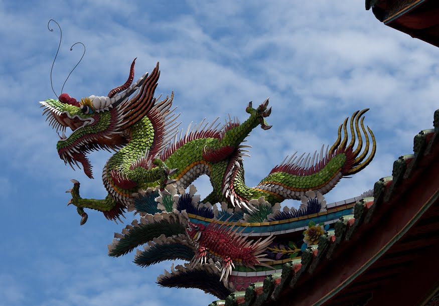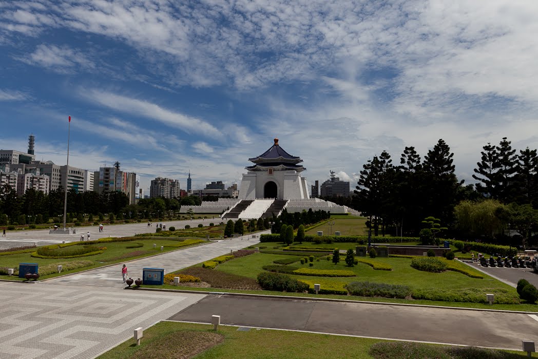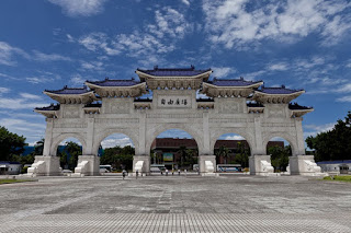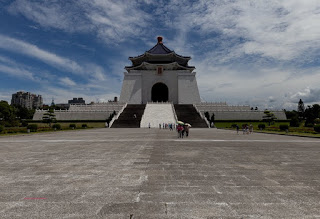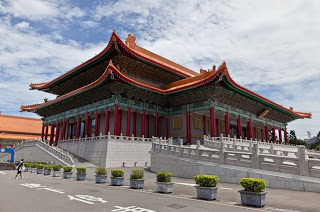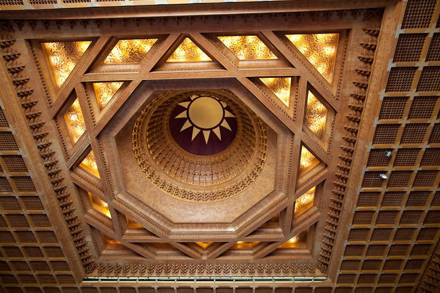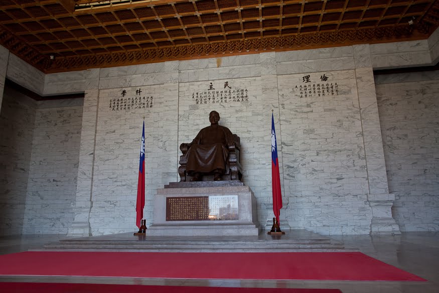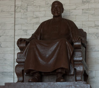 After taking a few minutes to visit a luxurious garden to have a look at some very interesting trees, I took the long walk up the plaza and climbed the stairs to Chiang’s Hall. He sat at the far end, very Abraham Lincoln-like with an interesting smile on his big bronze face. Kind of what you’d expect if he had just put his feet in a bucket of hot water after a hard day of war-lording and nation-building. Off to the side, his two honor guards stood stock still in crisp greens and chrome helmets. An attendant in a black suit would come over occasionally and mop their brow with a handkerchief. Overhead the most beautiful carved wood ceiling framed a dome that depicted the sun that serves as the chief logo on this nation’s flag.
