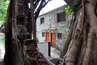 Bopiliao turned out to be a fascinating stop, an old 19th century neighborhood shoved to the side by the Japanese and left more or less intact. Many of the buildings had been restored and turned into galleries and shops. Some were used to house fascinating and poignant displays of photos of neighborhood life throughout the 20th century. Simple people going about their lives, celebrating weddings and children playing in the streets. It reminded me of my early life growing up in the inner city and made me realize just how alike we all are. There was a long courtyard behind the main set of buildings and it served as sort of an arboretum with trees and bushes labeled as to their species and their use. Here, I got to see my first Banyan tree up close, marveling at how it was crushing the life out of a brick wall. More surprising was a Breadfruit tree, a plant that figured large in my literary memory as being the chief reason for the voyage of the HMS Bounty to the South Seas in the 1700’s. Of course we know how that turned out and I still recall the scene as Marlon Brando and his merry mob of mutineers pelted Trevor Howard with potted plants as he and his loyal crewmen were forced into long boats for their perilous voyage back to civilization. The tree was a monster, very tall with giant lobed leaves that gave a lot of shade.