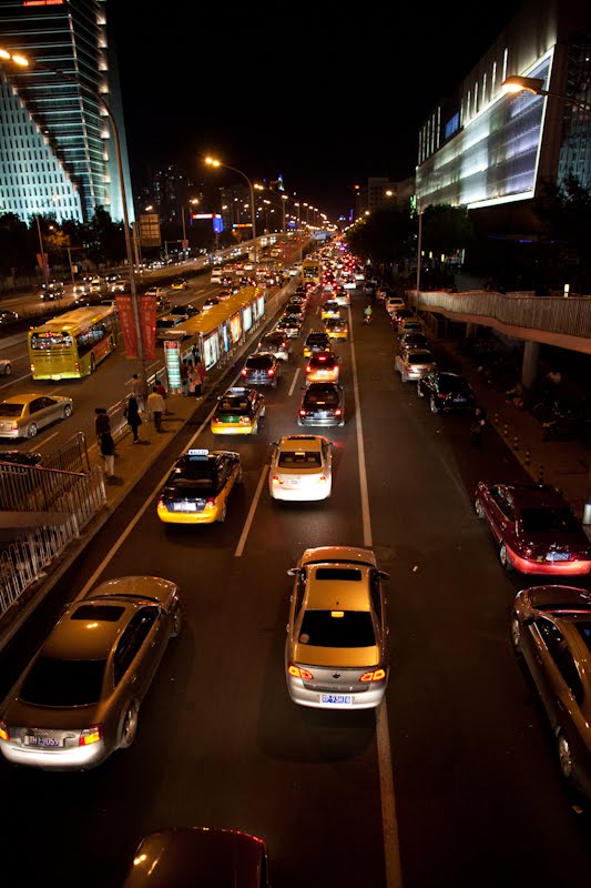 As I rode over on the plane an article about a recent spate of Beijing traffic jams caught my eye and I was surprised to see that the 22nd had been declared a voluntary “No Car” day. “Great” I thought, it will be an interesting experiment to see just how fast the normal 45 minute drive in from the airport will be. Sure enough, once in the cab and on the way, the major arterials were empty – we made such great time from the Airport Expressway to the 3rd Ring Road that I thought a record was in the making. Now I don’t like going this way, I much prefer a route that uses the 4th Ring Road and a quick little expressway by the name of Jintong which leads to a fast surface street that dumps out right by the hotel. Because it’s a better route, I trained myself to tell the cabbies the precise directions – “Cóng zhèlǐ dào dōng sì huán lù dào jīngtōng kuàisù dào tōnghuìhé bēilù zài dōng sān huán lù zuǒ guǎi ránhòu yī gōnglǐ” which translates as “From here go to the 4th Ring Road, then the Jingtong Expressway, then the Tonghui River North Road and when you get to the 3rd Ring Road turn left and go one kilometer. It sounds easy I’m sure, but trust me it’s a mouthful to remember. The advantage of going my way is that you don’t get bogged down in traffic on the 3rd Ring Road which is pretty busy, all the time. My way is sort of a cross-country route that avoids the traffic centers until the last minute; that last kilometer in other words. However, I wasn’t driving and this guy had a plan and just as I knew it would, his plan came crashing down the minute we left the Airport Expressway. “No Car Day”- I guess the Beijingese drivers hadn’t read the English version of China Daily. We went from rabbit fast to turtle slow almost immediately, and for the next hour (on a piece of the route that normally takes 15 minutes) we inched and crawled and made bad choices in trying to advance ourselves in the jam. I sat in the back smiling at the young women in the buses that would come up next to us; some of them smiled back, some glared and looked away. One or two ratted me out to their boyfriends who took over the glaring. We crawled along, first passing the still burned out CCTV skyscraper and then sat and stared at the hotel that was getting ever so much bigger as we slowly neared it. When he didn’t take the appropriate exit I got even more worried but he explained that the surface road below was even worse and I verified it with a quick look. We drove past the hotel and he opted for the exit in front of the mall next door which is never a good option. It means one of those oddities of traffic where your lane merges to the right across four lanes that are merging to the left. Today though there were only two because the two closest to the sidewalk were choked with cars parked at every imaginable angle to the curb. I should have mentioned that the biggest thing about Mid-Autumn Festival is the sharing of the Moon Cake, those tasteless blobs of paste filled with a disgusting salty fermented duck egg. And like holiday shoppers everywhere, some people just wait until the last moment. They’re on their way to their Auntie’s house and they realize that they forgot to buy their Moon Cakes yesterday. So they pull up their BMW at the Viva Mall in Chaoyang, and with no regard to their effect on the universe, they abandon it with its butt end into the traffic while they run in to pick up a case of those delectable delights. Now this would be bad enough in any American city, but it takes on a whole new dimension in a place with 5 million cars on the road. Needless to say it took a solid hour to drive the remaining ½ mile around the block to the hotel. As I left the cab, another fare started to climb in but the driver told him to “get lost”, I think he had had enough for the day.