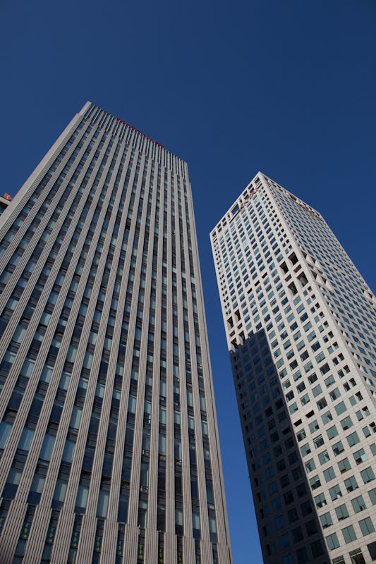 I took a lot of photos much to the amusement of passersby who must see the building every night and consider it common. When the street cleared and the security guard disappeared inside, I crept through the trees out front and got a better vantage. It turned out to be nothing more than an office building by the name of Beijing Golden Tower – an average edifice with a quotidian name but with a wonderful means of drawing attention to itself. I mean, it had lured me into walking a couple of miles in the dark.