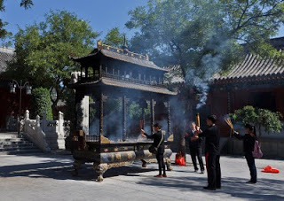 Exiting the station I went south crossing one of the canals that winds through this side of town. A hundred years ago barges containing Qing Dynasty nobles would have been passing beneath these bridges carrying the elite from one spot of splendor to the other. Today nothing plied these waters but the scene was peaceful – a deep blue sky and the brown water of the canal slowing rolling along its way. I found my first stop pretty quickly – Baiyun Guan (Temple of the White Cloud) – Taoism’s major center of worship here in the capital. In Chinese, Taoist holy sites are not officially known as “temples” but rather Guan. There is no deeper meaning in the language; rather the use of unique words merely indicates the differing religious affiliations of the structures. Alternately, Buddhist temples are known as Si or Miao, the latter suggesting the presence of a monastery. The site was first built on in 739, but those structures were destroyed by fire late in the 11th century. Genghis Khan ordered a major renovation in 1224 as part of his overall rebuilding of Beijing, but what stands today dates from 1443. It was a wonderful spot but not very different than any of the dozens of other temples I’ve visited here. The guidebooks say “the incense smells sweeter” and I suppose that might be true, but perhaps at this point I’m simply a victim of temple burnout. The architecture, gardens and worshipers seem to have become pretty much interchangeable for me although I will admit that the lack of tourists made it a hair nicer. This is a functioning site full of regular people and not generally a tour bus stop. Given my goal of getting off the beaten path, this first stop was a success. I roamed the grounds watching Chinese performing their rituals in front of the popular deities that promised wealth and fortune and having had enough wandered back out into the streets.