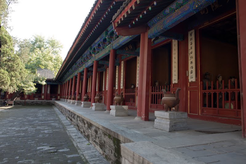 Before leaving Dalian I had taken the time to print out some maps of the location of the Dongyue Guan and as I walked along, I pulled them out for a review. Judging from the amount of traffic and construction, things didn’t look too promising – I found the right combination of streets but most of the area was hemmed in by construction fences and skyscrapers; all new building which led me to think that either the temple was gone or currently hidden or being incorporated into some sort of retail theme park. I tried the same trick I’d used at Tianning, walking the perimeter of entire block where Dongyue was supposed to be but there was no evidence that it was there, just offices, parking garages and shopping malls. Having just had the serendipity of finding Zhihua I took this as a sign and decided it wasn’t worth the effort so I left, heading back along Chaoyang Road towards the subway station home. Two blocks up the way I looked across the street and found myself starting at the red walls of a block-wide compound – Dongyue! I had been victimized once again by the Google Maps Offset that sometimes puts addresses a quarter of a mile off in the wrong place, so worried is the Chinese Government that someone might call in a missile strike. I crossed and went in.