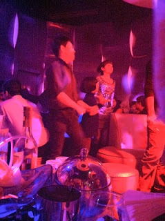 The last stop on my cultural tour of Chengdu was Club Muse, a well-heeled disco in the heart of an entertainment district. It’s been a long time since I’ve been to a bar and I guess that this was a nice introduction to how far they’ve come since I last went to one. Essentially a prix fixe deal, you buy a very expensive (minimum 100USD bottle of something ,we chose scotch) and grab a table (if you’re as well connected as we are) and put your cell phones in a specially designed Plexiglas stand (so you won’t miss a call) and sit back and enjoy the sights. The music was absolutely deafening and the cigarette smoke choking. If you wanted to dance you got up and did so by your table since the place had no dance floor. A drunken man across from us tried this and fell over backwards, breaking a lot of glasses and a table. Unbelievably there was a ten or twelve year old girl in that party. She would get up and dance with what I assume to be her parents. I thought about her ears and her lungs.