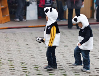 I’ve been to a number of zoos in China and they have varied from horribly pathetic to almost acceptable. The start of this place was not auspicious – a weedy shabby parking lot followed by a long walk down a lane along a concrete wall that was painted with now faded and chipped cartoonish depictions of Pandas. After the customary argument about who was going to pay (the cousin won) we went inside. Some people were selling panda hats and scarves on the island in the middle of the road outside the front gate.