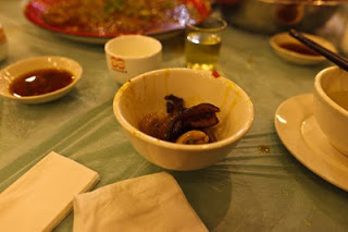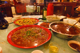Dinner this night was at a local place owned by a family friend that specialized in eel and frog dishes. The food was spectacular, even the eel which I’ve never eaten outside of a sushi restaurant and even then only grudgingly because it’s far from being a favorite. While it didn’t look very pretty, it was remarkably tasty. The restaurant was a very loud and busy – more like a giant family party than a café. Friends of Sahsa’s showed up and sat with us. They had an incredibly cute and precocious early teenaged daughter with them who tried hard to entertain us. It seemed as though everyone knew everyone else and I suspect that was the case as it always is with these neighborhood joints. Next up was a frog dish which was interesting as well. I’ve had bullfrog many times in China, always chopped up and stir fried with some complement of vegetables. This time the frogs were whole and they looked a lot like little pale yellow headless people. One of those dishes that you cannot look at too long, you have to simply dive in and of course I did and they were delicious. Last dish of the evening was a steaming stew of rabbit stomachs – I guess the last part of those little fellows that I had not tried. Served with a spicy red sauce laden with red chiles, they were about the size of a quarter and they reminded me of those rubber grapes that grandmas across the land had in bowls on their dining room tables while I was growing up. The only difference was these had two holes instead of one.