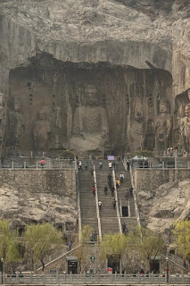 There are three major Buddhist grottoes in China. The first, Mogao, is far out in the west and difficult to reach. While supposedly the best due to its extensive collection of unspoiled frescoes, it was often a topic of travel conversation for me but never one that I felt was worth the challenge. Too far, too hard and not much else to justify a day of airport hopping and bus rides. I visited the second site at Yungang near the coal mining city of Datong back in 2010. While not easy to reach its difficulty is due more to the lack of flights than remoteness. It’s only an hour by air from Beijing on a plane that lands, turns around and leaves again until the same time on the next day. Datong turned out to be a nice city with some other attractions that were worth the trip and I was glad to have gone. Besides, my visit there allowed me to complete the Chinese 9 Dragon Screen Hat Trick, a goal I had no idea that I had until I was within walking distance of the other two on one hot afternoon in Beijing. The third site, Longmen lies a few hundred kilometers to the east of Xi’an and since we just happened to be there and within 2 hours by bullet train, going seemed like an obvious choice.