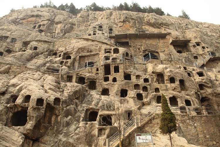 There are three major Buddhist grottoes in China. The first, Mogao, is far out in the west and difficult to reach. While supposedly the best due to its extensive collection of unspoiled frescoes, it was often a topic of travel conversation for me but never one that I felt was worth the challenge. Too far, too hard and not much else to justify a day of airport hopping and bus rides. I visited the second site at Yungang near the coal mining city of Datong back in 2010. While not easy to reach its difficulty is due more to the lack of flights than remoteness. It’s only an hour by air from Beijing on a plane that lands, turns around and leaves again until the same time on the next day. Datong turned out to be a nice city with some other attractions that were worth the trip and I was glad to have gone. Besides, my visit there allowed me to complete the Chinese 9 Dragon Screen Hat Trick, a goal I had no idea that I had until I was within walking distance of the other two on one hot afternoon in Beijing. The third site, Longmen lies a few hundred kilometers to the east of Xi’an and since we just happened to be there and within 2 hours by bullet train, going seemed like an obvious choice.
