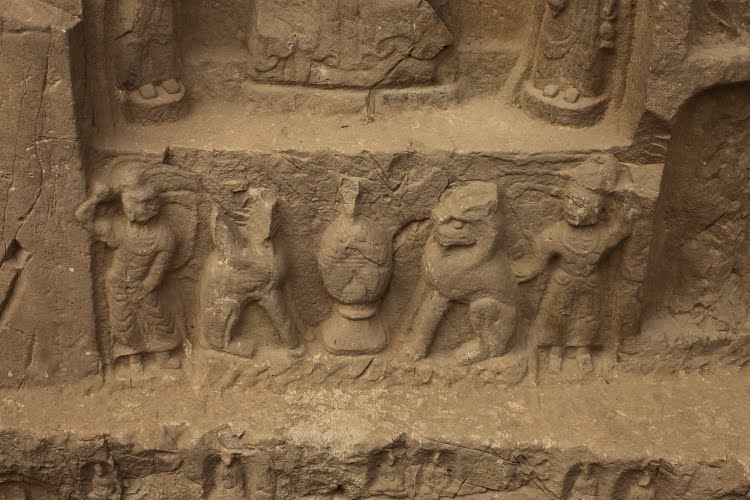 In 493AD Emperor Xiaowen of the Northern Wei Dynasty moved his capital from Datong to Luoyang and began the carving of the grottoes. The work continued during the Tang (618 – 907AD) and Song (960 – 1127AD) Dynasties. Today there are more than 2000 niches, 2800 steles, 1300 caves and 100,000 individual carvings. Unlike Yungang, this place has been extensively damaged starting with Western artifact collectors in the early 20th century and culminating with rampaging Red Guards during the Cultural Revolution. Almost all of the carvings at ground level are faceless.