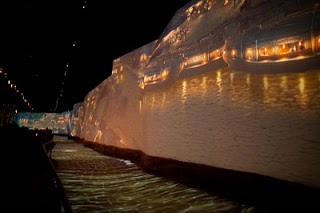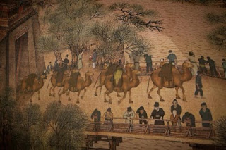 Lining the outer wall in a darkened gallery, a laser rendition of river water lapped at your feet. All the characters in the scroll went about their daily business as we watched from the far side of the river. Boats docked along the far shore, people sat in tea shops, a man rode a horse through the square, a child danced in a courtyard. Even a row of camels entered the town through the main gate, bringing wares from some bazaar far down the Silk Road. The scenes cycled from day to night every few minutes, with lamps appearing in the windows of houses and red lanterns being lit in alleys. Tiny ancient people stood on the far shore, looking across at us. It was superb and I think it would be easy to spend an entire day there just picking out the details. This alone made the trip here worthwhile.