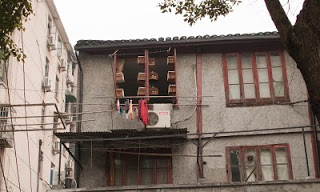The Shanghai Antiquities Market lies across the street and we made our way over. It’s not much different that the Beijing version, being stocked with thousands of identical artifacts. I stopped at one stall to negotiate some trinket with a young lady. She looked at My Lovely Wife and produced a hair brush. With a somewhat sheepish smile, she asked My Lovely Wife if she could brush her hair. It seemed we’d encountered a new, more intimate version of the now famous “have your picture taken with a westerner” activity. My Lovely Wife turned her head and allowed the girl to brush out the ends. But that wasn’t what she really wanted – she wanted to brush her bangs. My Lovely Wife graciously allowed this too. The girl thanked her with a big smile. It was getting cold and the weather seemed to be changing.