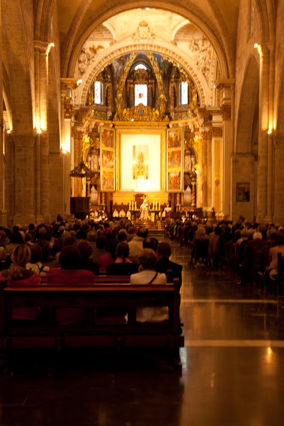 Around 5 PM the bells in the neighborhood cathedrals started to ring incessantly and so we decided to head outside. There were a lot of people in the streets and squares which suggested something might be brewing, but it turned out that this, being Holy Thursday was merely a prelude to Good Friday (a holiday here) and so most of these people were in the neighborhood for the purpose of attending Mass at the main cathedral. We tucked inside listened to the Bishop of Valencia deliver his homily for the impending holiday.