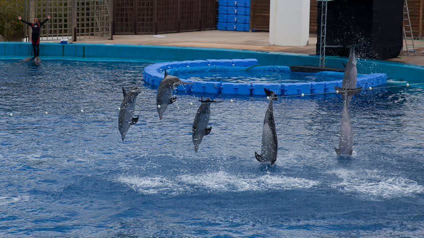 It seemed like a lot of money but the place truly was a full day endeavor. The technology of the exhibits was quite impressive, in the same vein as every other aquarium (big tanks in dark rooms, little tanks in dark rooms, underwater tunnels, etc.) but on a much grander scale. Their tropical fish display was incredible, as was their marshland aviary, stocked with Scarlet Ibis, Spoonbills and a host of other ducks, herons and really big catfish. The crowds were a bit unruly, worse even than the tourists in China (if you can believe that) and by the end of the tour I was pretty tired of being run over by screaming children and poorly steered strollers. To get a break we decided to sit with the hordes in a big amphitheatre and watch the porpoise show. While not a big fan of this particular art form it was entertaining and nice to sit for a while. A woman in front of me was trying to breastfeed her baby who was much more interested in staring and smiling at me, a combination of little things that spelled “awkward.” He eventually latched on and left me alone.
