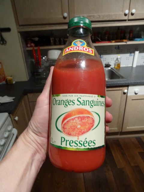 What a difference a day makes. Friday night was busy, Saturday night was mobbed. We had a short list of staples and decided on another interesting quiche for dinner. While we were heading to the checkout, I saw the juice aisle and had a memory – last night while I was lying in bed trying to fall asleep, I thought about Blood Orange juice. Blutorange was the name of the German product I used to buy at Metro in Dalian and it was one of those little things that really kept me sane during my time there. I developed a taste for it and remember being crestfallen when close to the end of my term there, it disappeared. I suppose the ship carrying the Blood Orange supply must have gone down in the middle of the Pacific, or perhaps it was on a train that was hijacked in Tajikistan, because it disappeared I never saw it again. In any store. And it was sad. But here I was, close to the source and lo and behold, there it was Oranges Sanguines as it’s known here. I grabbed a bottle and checked out.