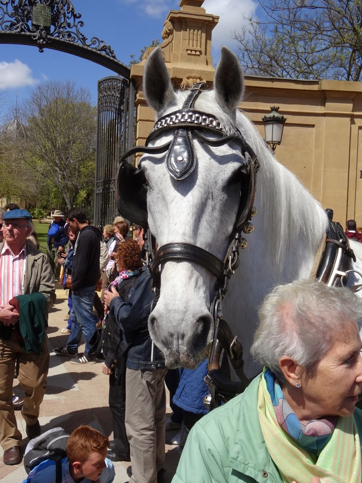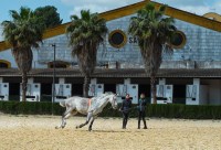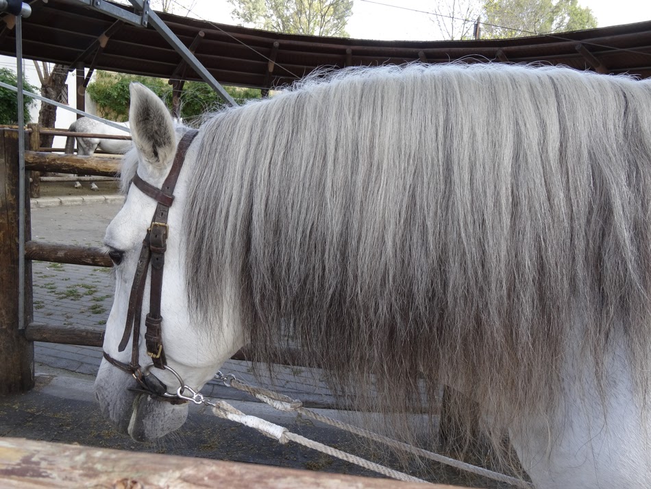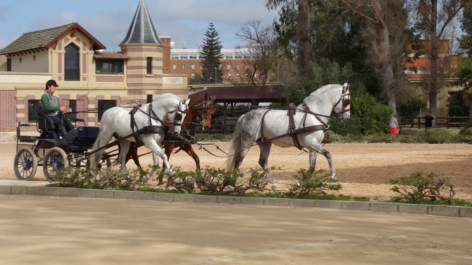 Being early though we had a very nice time wandering the grounds and watching the horses work out in the practice arenas before the crowds started to arrive. The history of the Andalusian horse stretches back into antiquity. Both the Iberians and Celts had horses well before the arrival of the Romans. The conquest of the Moors in the 8th century cemented the place of the horse in Spanish culture and their influence on the breeding stock and riding methods ultimately led to their defeat by the Christians. The Catholic Kings took great interest in developing the stock and passed many laws requiring brands, registration and banning exports in order to maintain the purity of the breed. Starting in the 15th century, breeding was controlled by a monastic order that established a stud farm in Jerez which was ultimately broken up when the French invaded in the early 19thcentury. Chaos ensued with horses being taken away and control of the breed being wrested from the Spanish. A parallel stud was established in Vienna, ultimately developing the Lipizzaner line. The Andalusian remained unique only in the countryside of Spain. Over the years, various stud farms developed and in 1973, the Royal School was founded to consolidate the development of the breed.